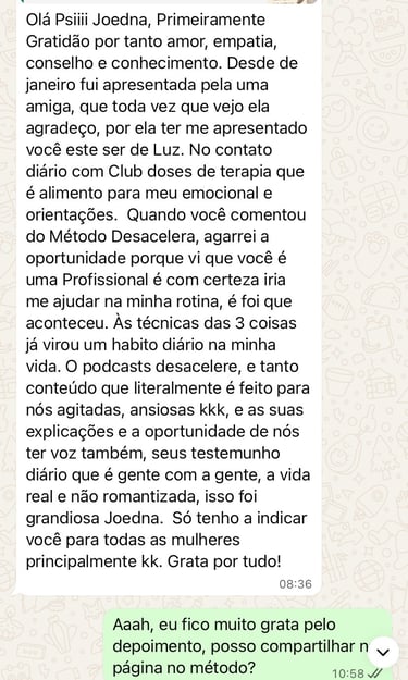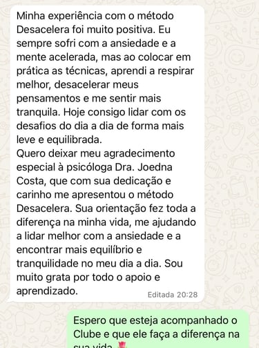 O Manual da Mente Ansiosa é mais do que um guia, é um convite para você retomar o controle da sua vida. Através do Método Desacelerando, desenvolvido com carinho e experiência clínica, você será conduzida passo a passo para enfrentar a ansiedade, reorganizar seus pensamentos e reencontrar o equilíbrio que merece. Tudo isso de forma prática, acolhedora e acessível, para que você consiga respirar aliviada e sentir-se mais leve a cada dia.