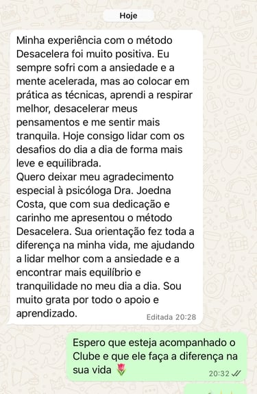 "você terá em mãos técnicas simples e eficazes para aplicar no seu dia a dia e conquistar mais clareza mental, foco e leveza emocional, e ainda terá apoio contínuo diário no CLUBE Terapêutico."